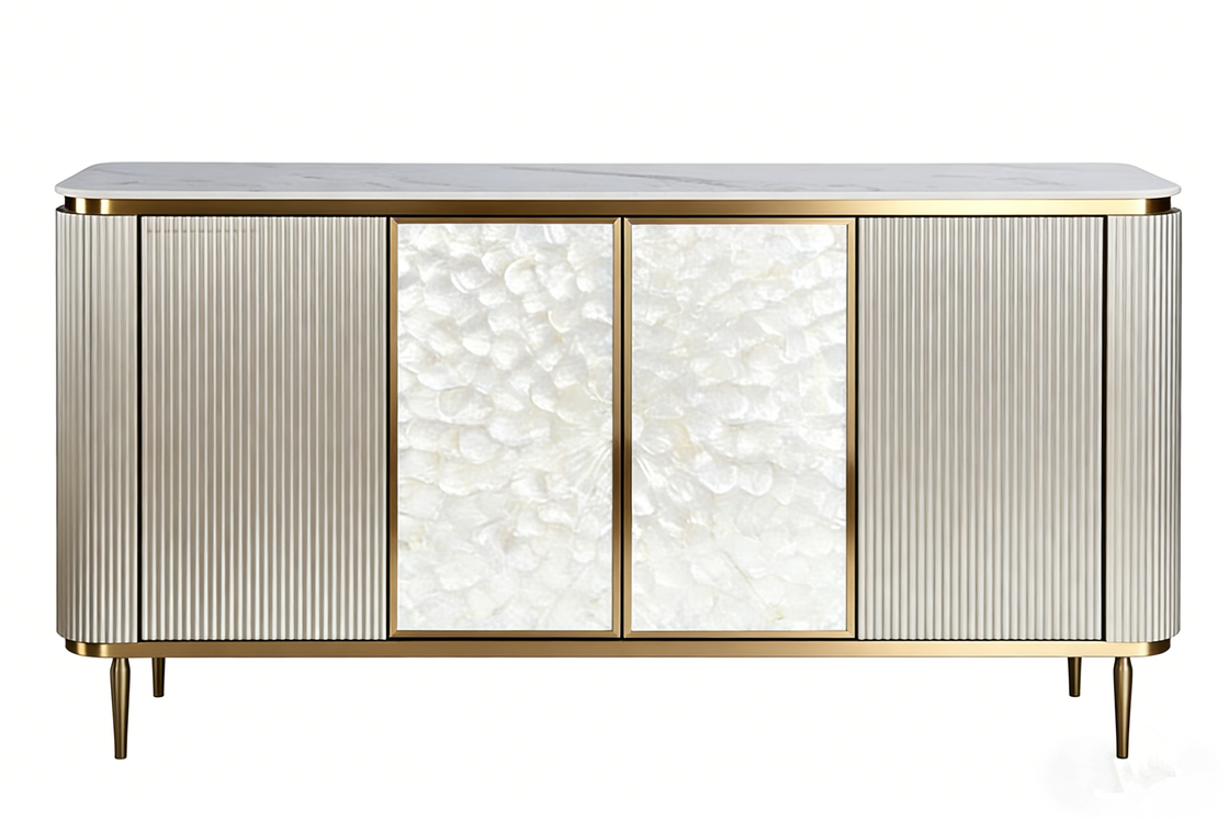 Top: stintered stone , MDF with shell, S/S |